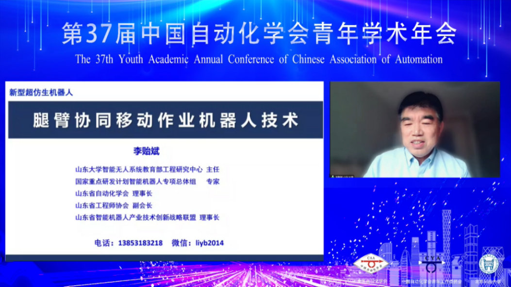 李贻斌教授作“液压驱动腿臂协同移动作业机器人关键技术”大会报告